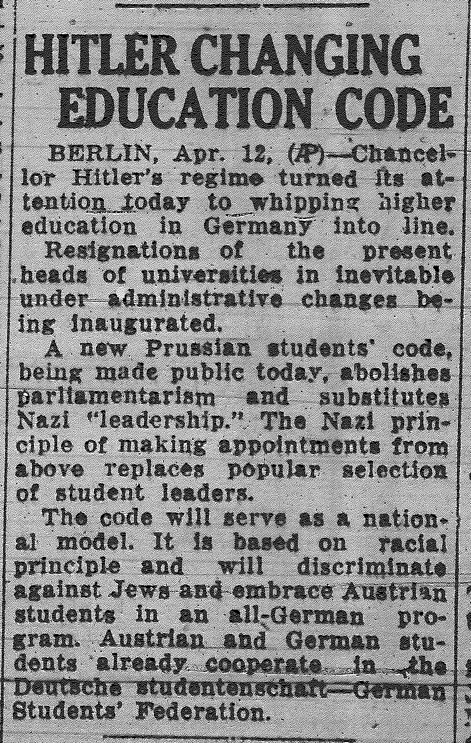 HITLER CHANGING EDUCATION CODE